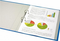 書類の端がきれいにそろう丈夫な貼り表紙のDリング式。閲覧・検索がスムーズ。とじ具の開閉はリングを指で軽くあけるDリング式。
