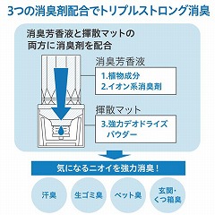 消臭芳香液を上から供給する「スッキーリ方式」で、最後の一滴まで消臭効果が続きます。お部屋用置き型消臭芳香剤