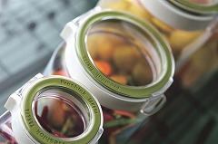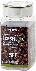 上から中身が見える透明フタの保存容器。口径が広いので中身の出し入れやお手入れがしやすい。風味を逃さず、湿気を遮る高気密性。