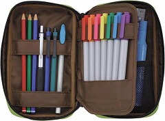 ダブルファスナー仕様のペンケース。ペンも文具小物もたくさん入るブックタイプです。
