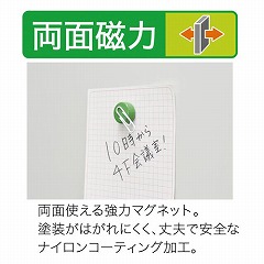 両面磁力がある強力カラーマグネットです。表面はナイロンコーティング加工なのでスチール面を傷つけません。