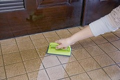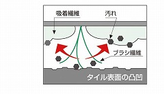 洗剤を使わずに水で濡らしてこするだけで汚れを落とせます。W繊維が表面の凹凸に入り込み汚れをかきだします。