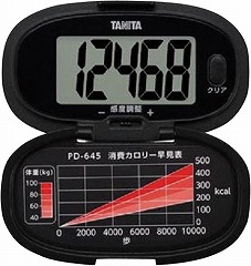 文字が大きくて見やすい、設定いらずのかんたん歩数計。消費カロリー早見表付き。感度調整機能付き。