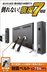 地震対策に!震度7相当の振動試験もクリアした、設置台や壁面に穴を開けずにテレビや周辺機器の前方への転倒を防止する“粘着シールタイプの耐震ベルト”