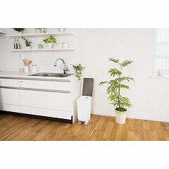 軽く踏んでサッと開くペダルペール。フタのカラー違いを並べればゴミの分別も可能です。