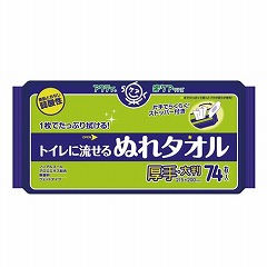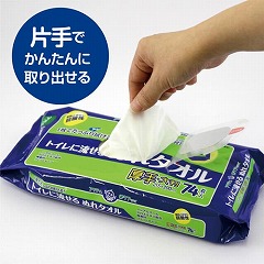 大判厚手、使用後トイレに流せます。素肌と同じ弱酸性。片手でらくらくストッパー付。ノンアルコール・無香料・アロエエキス配合。
