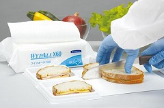 薄手素材の不織布ワイパー。水やアルコールに濡らしても破れにくい素材。食品加工作業にも安心。不織布タイプ ハイドロニット素材。接着剤不使用。食品衛生試験実施済み RoHS指令適合。