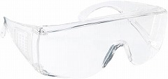 めがねの上から装着可能。ポリカーボネイト製。色 クリア。99.9%UVカット。ANSI Z87.1適合品。JIS T 8147適合品。傷つき防止。サイド保護機能*有害光線やレーザー光には不可。