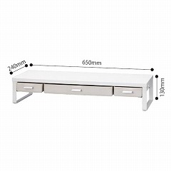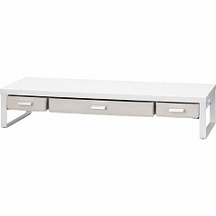 電卓など事務小物がスッキリ収納できる机上台。大きい引出しはA4サイズまで収納可能です。オフィスになじむホワイトカラーが登場。