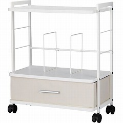 デスクの下から引き出しやすい、キャスター付きワゴン!引出し付きなのでホコリも入りにくく、ブランケットなどの収納も可能です。