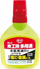 木・革・布・紙同士の接着に加えて、片方が塩ビ・金属の接着が可能です。乾燥時間が「ボンド 木工用」の約半分です。