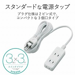 電源タップの基本性能をしっかり搭載!180度スイングプラグを採用し、オフィスやご家庭など、さまざまなシーンで使いやすいスタンダードな電源タップ。