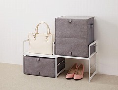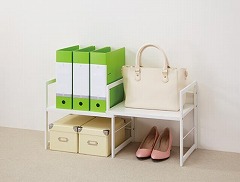 幅が調整できるので、収納量や設置スペースに合わせて置ける!収納力抜群の上下二段式。