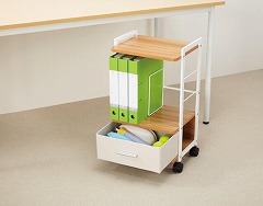 デスクの下から引き出しやすい、キャスター付きワゴン!引出し付きなのでホコリも入りにくく、ブランケットなどの収納も可能です。コンパクトなデスクにも置きやすい幅350mmのスリムタイプが新登場。