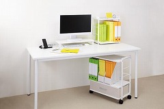 ●材質/天板・棚板:メラミン化粧板、フレーム:スチール(粉体塗装)、引出:ポリエステル・板紙