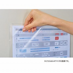 書類を保護しながら簡単に掲示ができる!キャビネットなどのスチール面やボードに掲示ができるマグネット式で貼り替えも簡単。書類を入れてストッパーでとめるだけで掲示が完了し、水や汚れから中身を守ります。