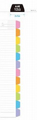 丈夫で折れにくい厚口タイプのフィルムふせん。A4縦サイズの書類に12山が並べて貼れるぴったりサイズ設計。書類の分類や長期保管のインデックス+メモに最適。