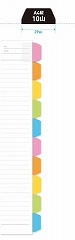 丈夫で折れにくい厚口タイプのフィルムふせん。A4縦サイズの書類に10山が並べて貼れるぴったりサイズ設計。書類の分類や長期保管のインデックス+メモに最適。