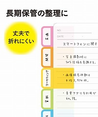 丈夫で折れにくい厚口タイプのフィルムふせん。A4縦サイズの書類に10山が並べて貼れるぴったりサイズ設計。書類の分類や長期保管のインデックス+メモに最適。