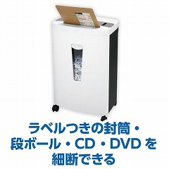 厚紙やCD、シール付き封筒や窓付き封筒もそのまま細断できるクロスカットシュレッダー登場。用紙は最大17枚細断可。オートクリーニング機能搭載で耐久性もUP。