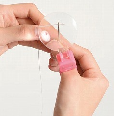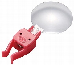 指に差しこむだけで簡単取り付けのルーペです。倍率約2.5倍、直径約46mmの大きなレンズで見えやすい。重さが約14gと軽く、指が疲れにくい。指に固定するので両手が自由に使えます。