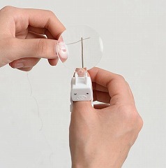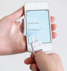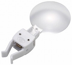 指に差しこむだけで簡単取り付けのルーペです。倍率約2.5倍、直径約46mmの大きなレンズで見えやすい。重さが約14gと軽く、指が疲れにくい。指に固定するので両手が自由に使えます。