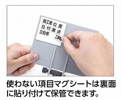 ツヤケシスチール板使用で写真撮影時にはっきり写す事ができます。項目マグシートを貼るだけで項目を変更できます。板面は任意の角度でガッチリ固定できます。握り易く滑りにくいゴム素材のグリップです。