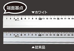 長さの測定・カッティング定規・溝引きとして使用する直尺です。本体が白く黒い文字が見やすくなりました。裏面にスポンジ付。危険防止壁でカッターの刃が滑って乗り越えることがありません。溝引き付。