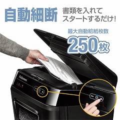 最大250枚までの書類を高速自動細断。セキュリティレベルの高い2x14mmのマイクロカット・モデル。
