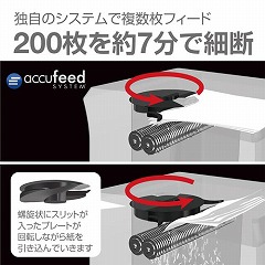 最大200枚までの書類を高速自動細断。一度に複数枚細断するので高速での自動細断が可能。