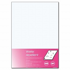 雨に強い!水をはじくプリンタ用紙。上質紙の両面に撥水塗工が施されており屋外掲示物に適しています。コピーやレーザープリンタでの印刷や鉛筆・油性ペン等の筆記が可能です。
