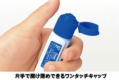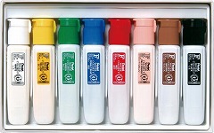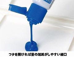 キャップは片手でも開け閉めできるワンタッチキャップ。量の加減がしやすい細口+ソフトチューブ。えのぐの配色が一目でわかるパッケージデザイン。