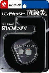 テープの切口がまっすぐ切れる直線美ハンドカッター。グリップ性が高く作業性に優れており、動きのあるシーンに最適です。18mm×25mのセロテープ1巻入り。