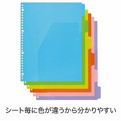 仕切カードごとにポケット付きだから、分類ごとに書類が簡易保管できる!分類ごとに保管すれば目当ての書類が探しやすく、透明ポケットだから小さな書類も見つけやすい!