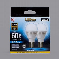 トップランナー制度対応、2017年度省エネ法目標基準値達成のLED電球です。白熱電球のように広範囲に明るい広配光タイプなので、トイレや階段などの照明に最適なLED電球です。
