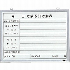 ●仕様/表示内容:危険予知活動表、取付方法:吊下げ(金具取付済)、付属品:カラーマグネット4個、ラーフル1個、マーカーペン黒・赤各1本