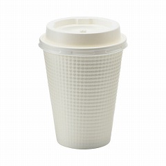 エンボス加工した紙スリーブを装着した、すべりにくく断熱性に優れた紙コップです。