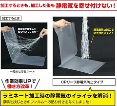 加工時も加工後も静電気を逃がしてホコリを寄せ付けない!書類セットもスムーズでラミネート加工の作業効率アップ!