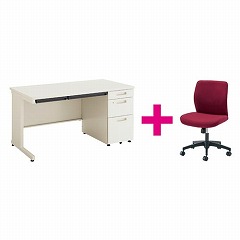 ●セット内容/42251262「ピクサ2D700片袖机W1400 ナチュラルグレー」×1台+43282739「スペキュラー2肘なしワインレッド」×1脚