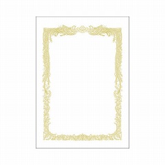 幅広い用途のベーシックなホワイトベース。美しい金色の輝きを保つ特殊印刷をした賞状です。お得な100枚入りです。OA対応です。従来からの手書きや通常印刷にも使用できます。