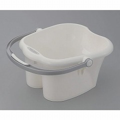 かかと側が傾斜していますのでゆったりと足浴できます。ハンドルは握りやすく、タオル掛けや横置き時の支えとしても利用できます。
