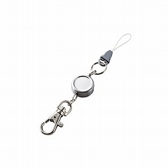 使いたいときだけすっと伸びる!ベルトループやカバンなどに装着可能なフックがついた、コンパクトタイプのコードリールストラップ。