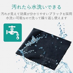 汚れが見えて効果が分かるブラックタイプ。超極細繊維で汚れやホコリをきれいに拭き取り、ホコリの再付着を防止する静電気抑制タイプのクリーニングクロス。