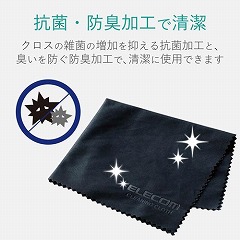 汚れが見えて効果が分かるブラックタイプ。超極細繊維で汚れやホコリをきれいに拭き取り、クロスの雑菌の増加を抑える抗菌・防臭タイプのクリーニングクロス。