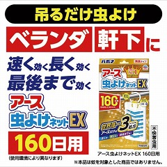つるだけ簡単なネットタイプの虫よけです。3つの薬剤で、速く効いて、最初から最後まで虫よけ効果を発揮します。お取り替えサイン付です。