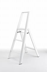 ビスの見えないシンプルなデザインステップ。ワンタッチで簡単に折りたたむことができます。折りたたんだ状態で自立するので、出しっぱなしでも様になります。上枠がついた昇降に安心な3段タイプ。
