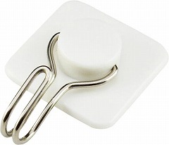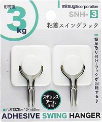 360°回転、180°スイングの粘着式フック。アーム部分はサビにくいステンレス製。