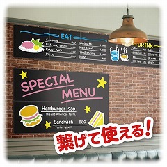 マグネットがくっつくブラックボード。チョーク&マーカー対応。枠なしタイプ。フック金具2個付き