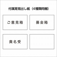 ●仕様/付属背見出し紙:「ご意見箱」「募金箱」「貴名受」「(無地)」の4種類