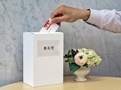 ご意見箱や募金箱など、シーン別で使い分けできるボックス。丈夫な貼り表紙仕様で、軽量で持ち運びにも便利。見出し紙は「ご意見箱」「募金箱」「貴名受」「(無地)」の4種類が同梱されています。